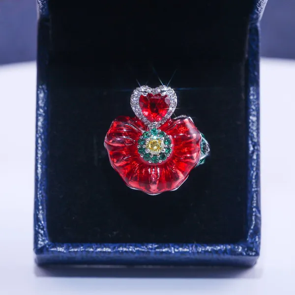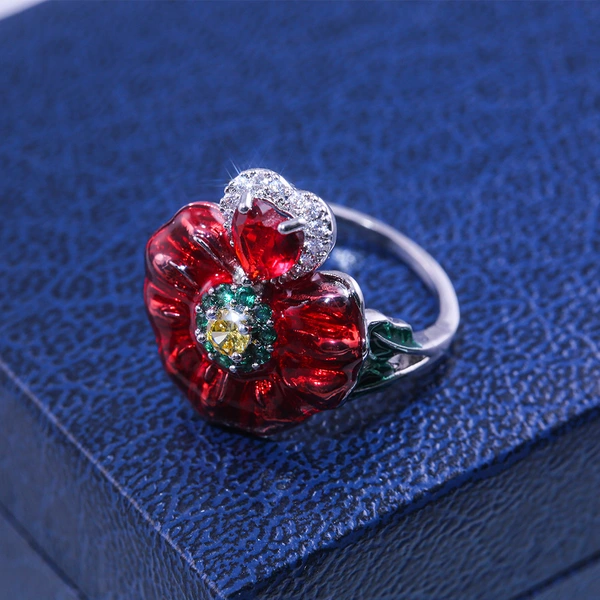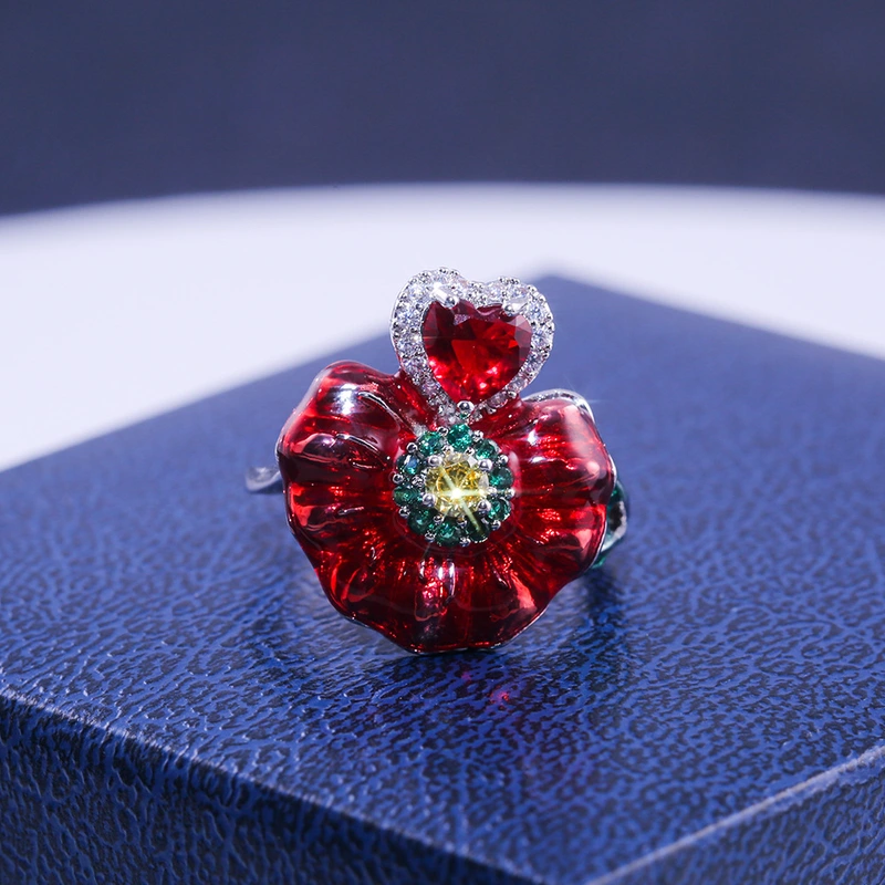 خاتم وردي أوروبي وأمريكي للنساء، خاتم مصنوع من المينا، منتج رائج في التجارة الإلكترونية