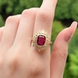 خاتم يد جديد بتصميم إبداعي مطلي بالذهب للنساء مرصع بأحجار كريمة حمراء