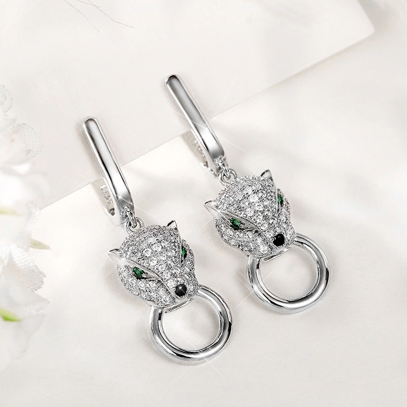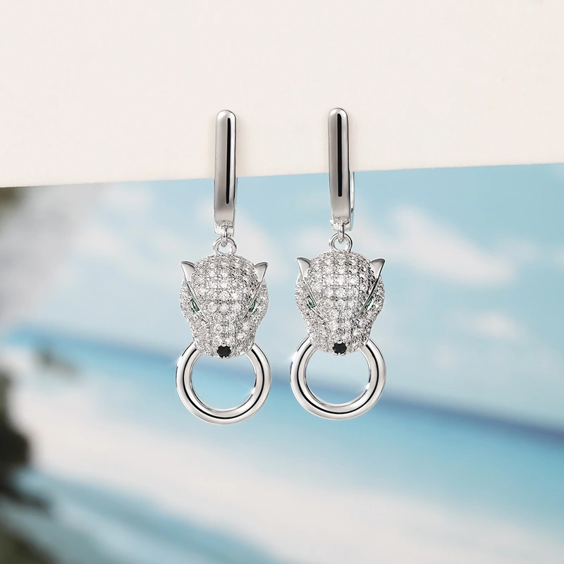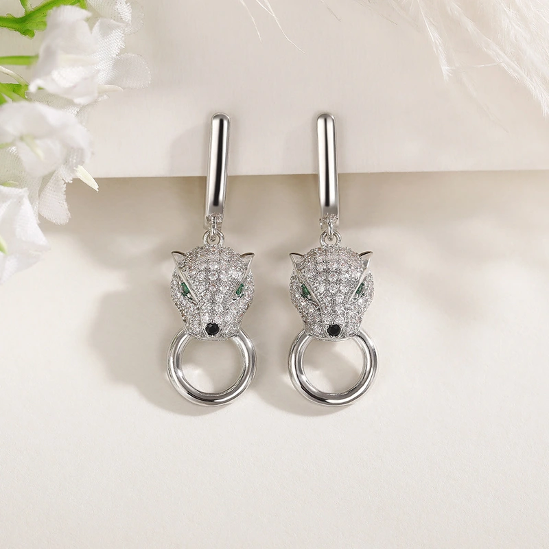 خصيصًا للأقراط الأكثر مبيعًا، أقراط نحاسية على شكل رأس نمر بري بمزاج للنساء، أقراط عين خضراء مرصعة بالميكرو بشكل عصري