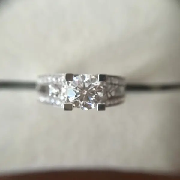 خاتم كلاسيكي مرصع بأحجار الزركون المقلد بأربعة مخالب للنساء، خاتم ذراع ملتوي مزدوج اللون، خاتم خطوبة وزواج للنساء