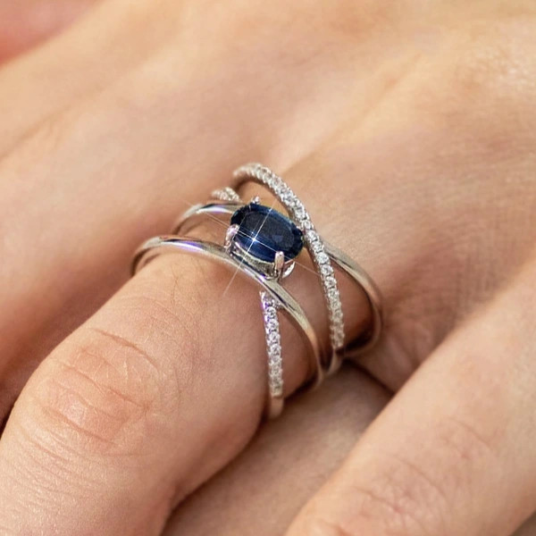 خاتم بتصميم أوروبي وأمريكي فاخر، خاتم عصري من الزركون على شكل عين الحصان، خاتم إصبع السبابة بتصميم مجوف متعدد الطبقات