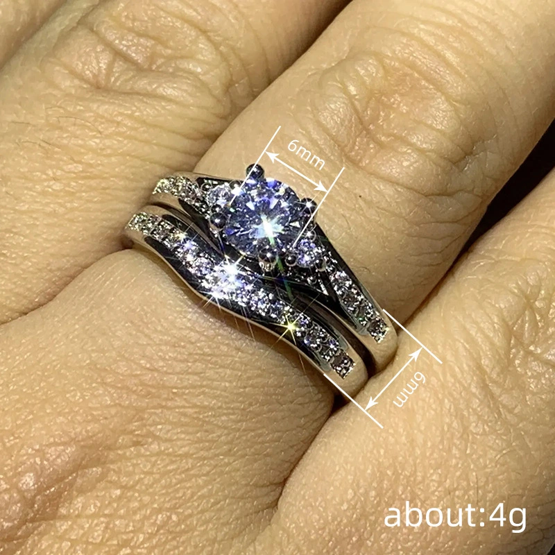 خاتم زفاف كلاسيكي مرصع بالزركون بستة مخالب على الطراز الأوروبي والأمريكي، خاتم فاخر خفيف الوزن، مناسب لجميع المناسبات، مرصع بالزركون بستة مخالب على الطراز الأوروبي والأمريكي