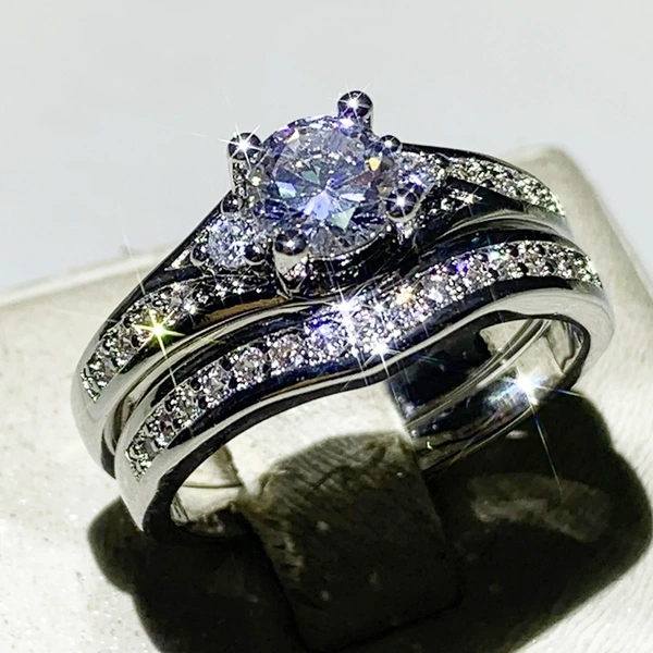 خواتم اقتراح الزفاف الأكثر مبيعًا بأربعة مخالب مرصعة بمجوهرات الزركون، خواتم فاخرة راقية رائعة