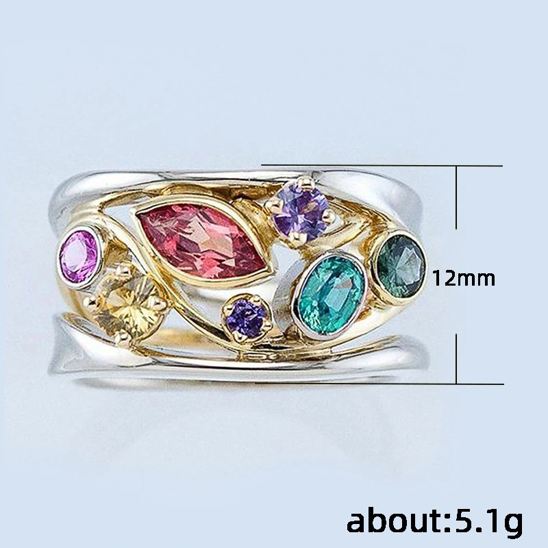 خاتم كلاسيكي مرصع بأحجار الزركون المقلد بأربعة مخالب للنساء، خاتم ذراع ملتوي مزدوج اللون، خاتم خطوبة وزواج للنساء