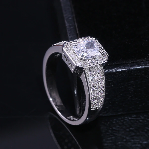 خاتم الأميرة المربع الجديد الأكثر مبيعًا على الطراز الأوروبي والأمريكي المرصع بالزركون مجوهرات نسائية خاتم خطوبة وزواج