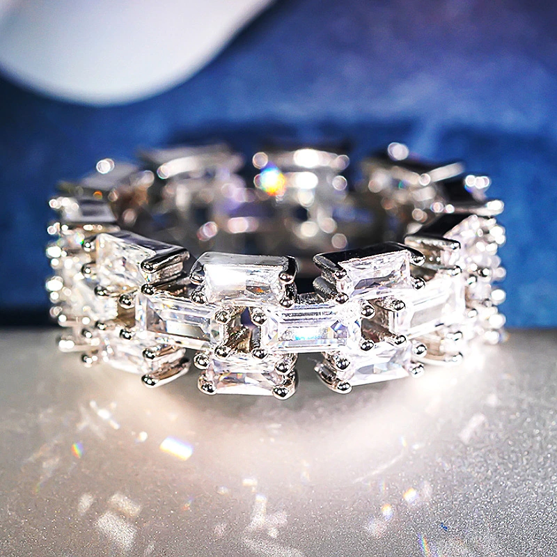 خاتم الأميرة المربع الجديد الأكثر مبيعًا على الطراز الأوروبي والأمريكي المرصع بالزركون مجوهرات نسائية خاتم خطوبة وزواج