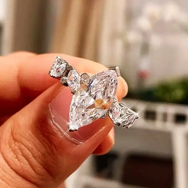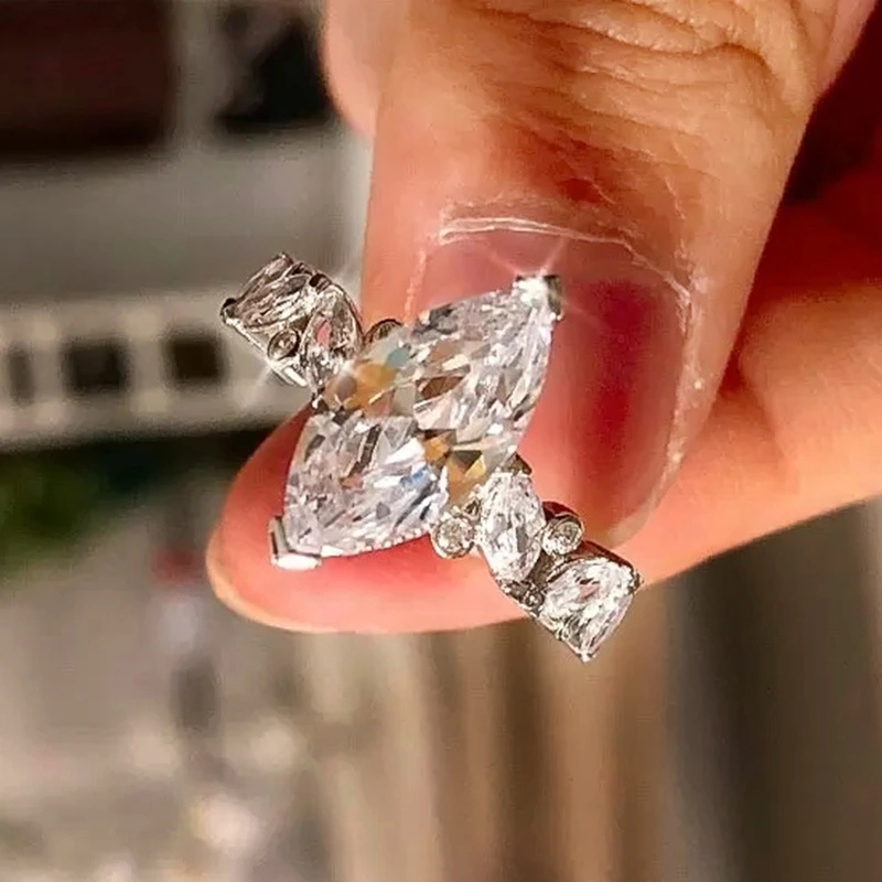 خاتم زفاف جديد من الزركون اللامع على شكل عين حصان إبداعي مجوهرات حية للنساء