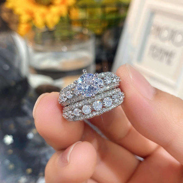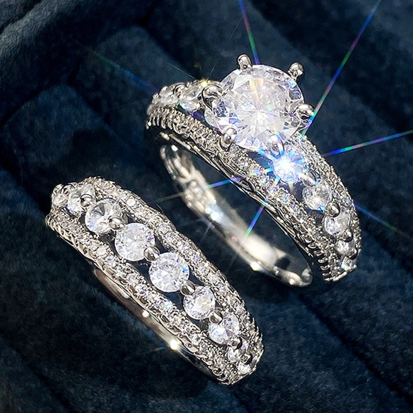 خواتم زوجية اقتصادية من السجاد الأكثر مبيعًا على الموضة الأوروبية والأمريكية للسيدات هدايا عيد الميلاد من الزركون
