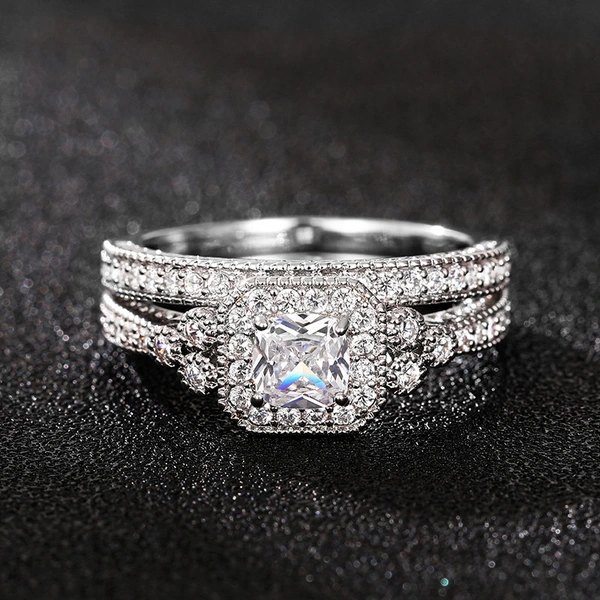 خاتم الأميرة المربع الجديد الأكثر مبيعًا على الطراز الأوروبي والأمريكي المرصع بالزركون مجوهرات نسائية خاتم خطوبة وزواج