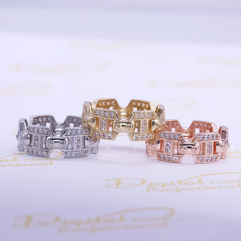 خاتم بتصميم أوروبي وأمريكي فاخر، خاتم عصري من الزركون على شكل عين الحصان، خاتم إصبع السبابة بتصميم مجوف متعدد الطبقات