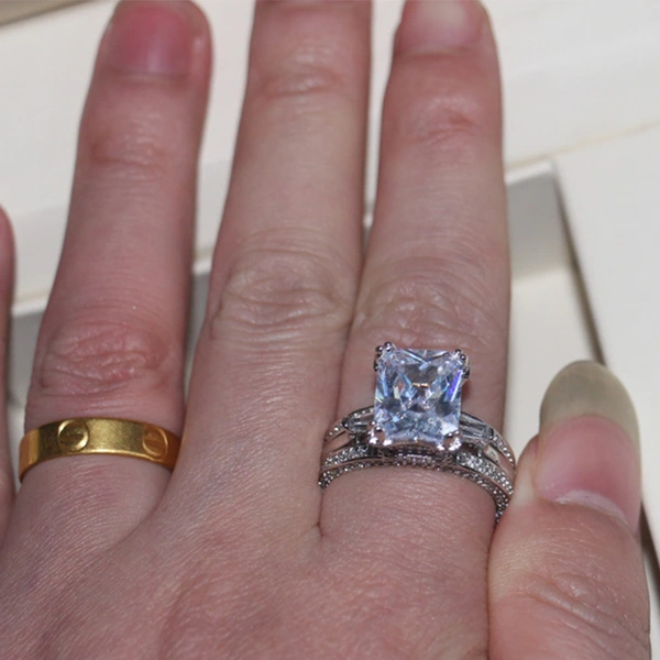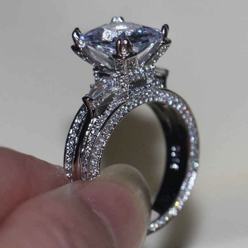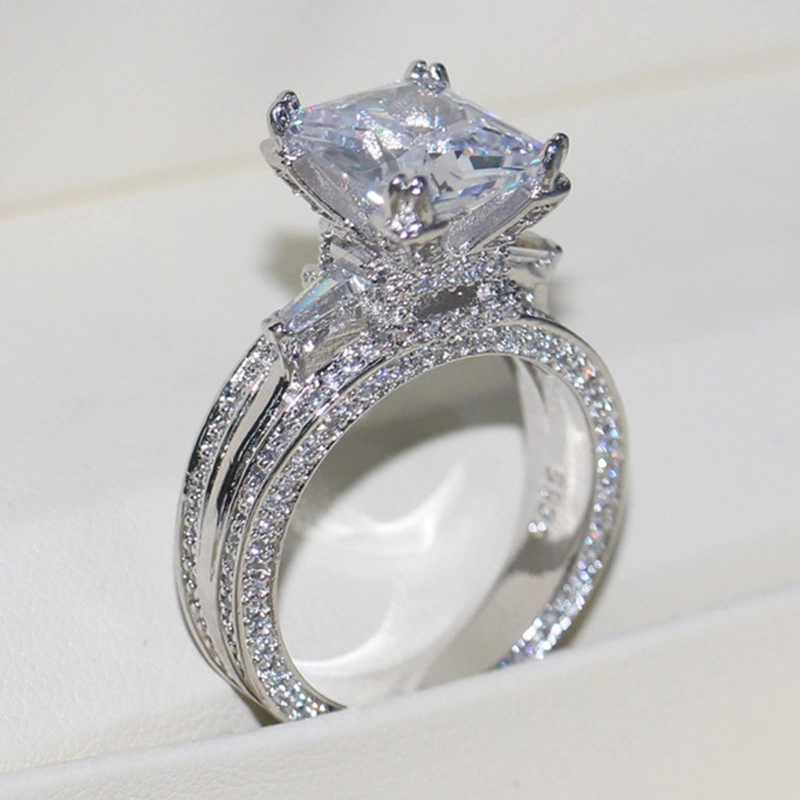 خاتم الأميرة المربع الجديد الأكثر مبيعًا على الطراز الأوروبي والأمريكي المرصع بالزركون مجوهرات نسائية خاتم خطوبة وزواج