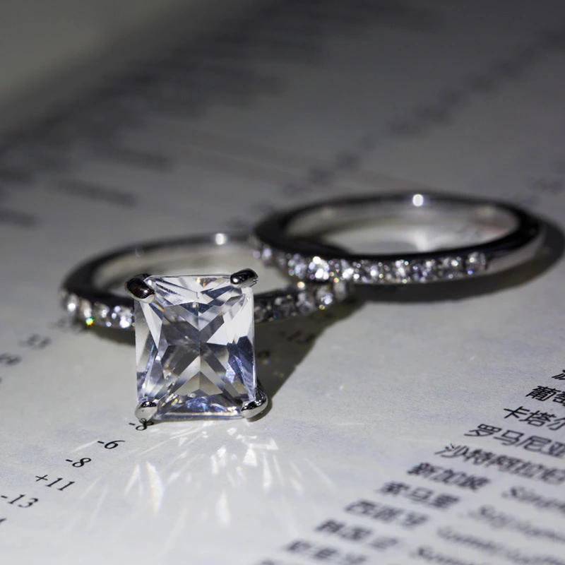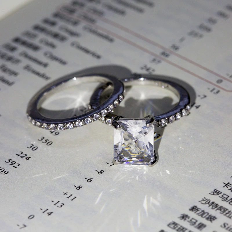 خاتم الأميرة المربع الجديد الأكثر مبيعًا على الطراز الأوروبي والأمريكي المرصع بالزركون مجوهرات نسائية خاتم خطوبة وزواج