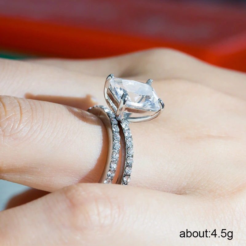 خواتم نسائية رائجة البيع، خواتم ألماس كبيرة مقلدة، خواتم خطوبة وزفاف، مجوهرات يدوية مرصعة بأحجار الراين مطلية بالفضة