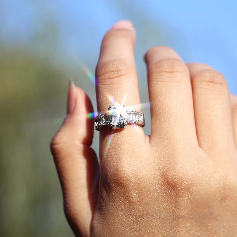 خاتم الأميرة المربع الجديد الأكثر مبيعًا على الطراز الأوروبي والأمريكي المرصع بالزركون مجوهرات نسائية خاتم خطوبة وزواج