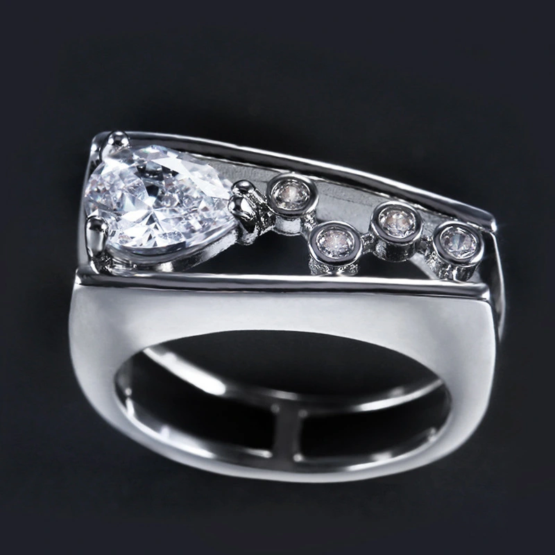 رائجة البيع نمط جديد في أوروبا وأمريكا، واضح الملمس قطرة الماء الزركونيوم خاتم الماس، مجوهرات الشارع