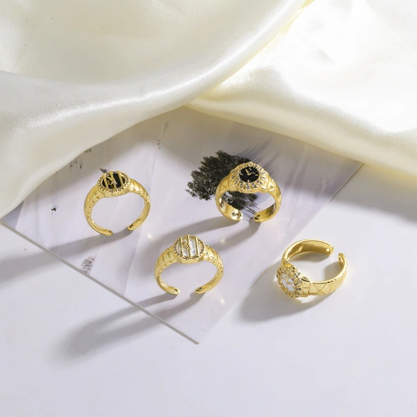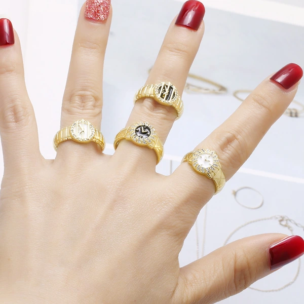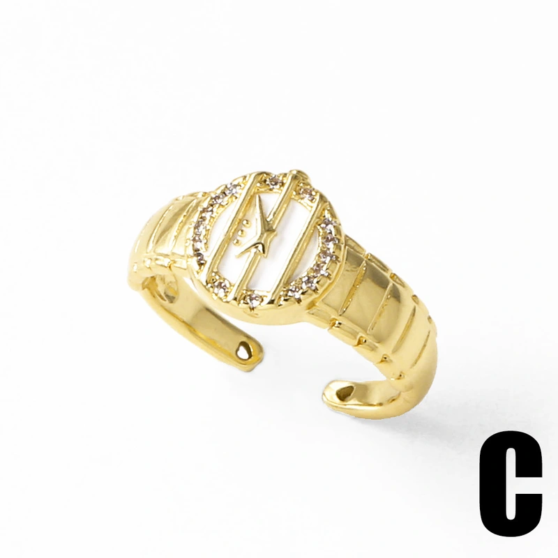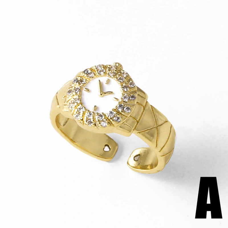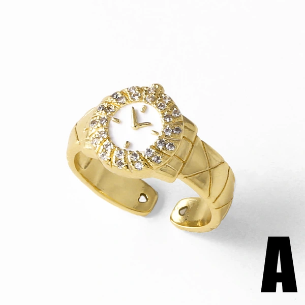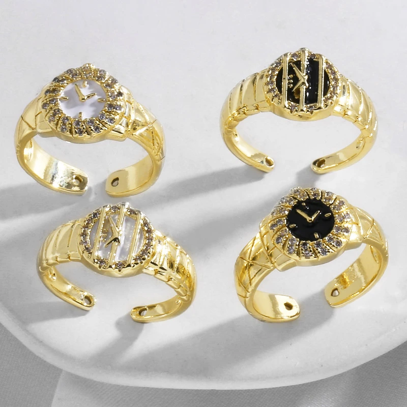 ساعة يد مفتوحة مرصعة بالزركون ومطلية بالذهب كقطعة مجوهرات، خاتم rij55