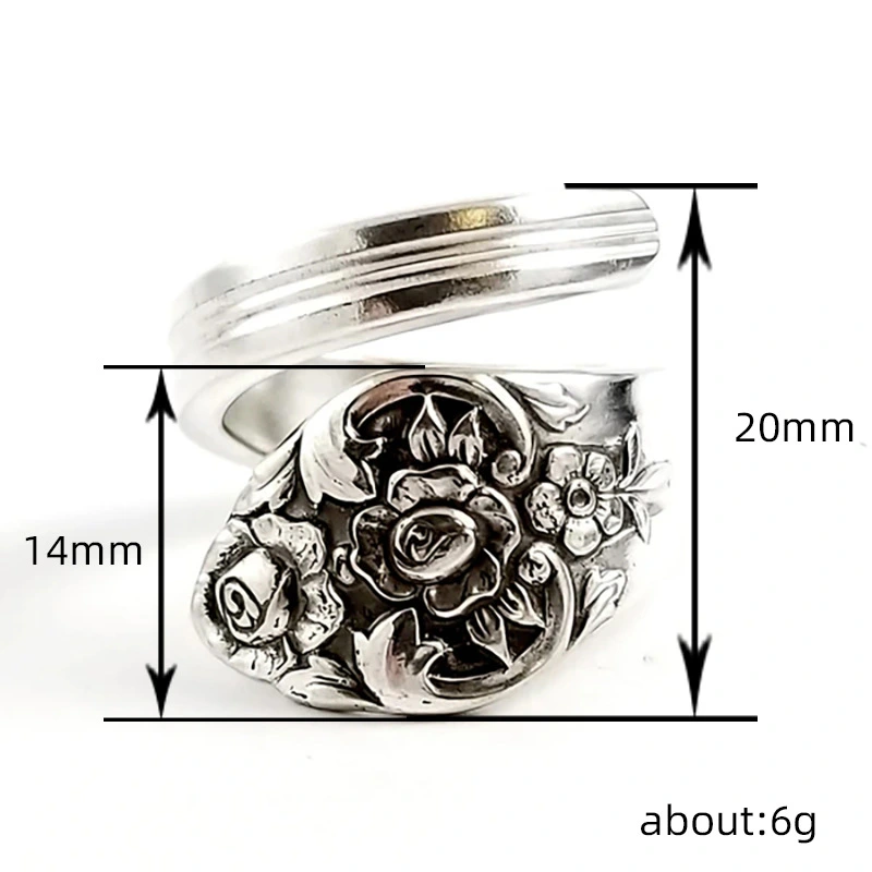 خاتم زهرة ميمونة محفورة بشكل كلاسيكي بتصميم عريض من خاتم مياو على الطراز العرقي من يونان، مجوهرات للرجال والنساء