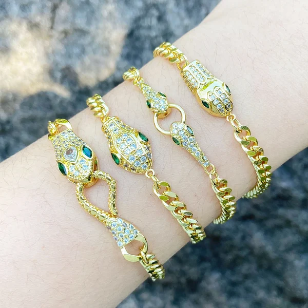 سوار ثعبان بسيط على الطراز الأوروبي والأمريكي بتصميم نيش نسائي مرصع بالزركون مطلي بالذهب مجوهرات يدوية راقية brm34