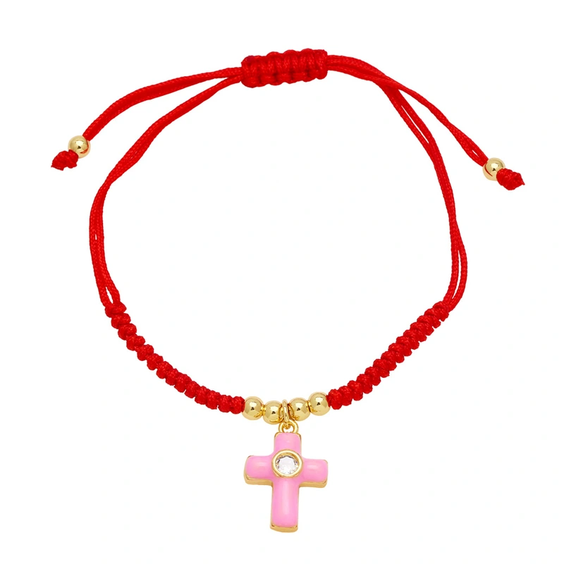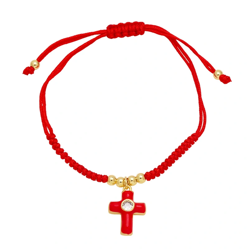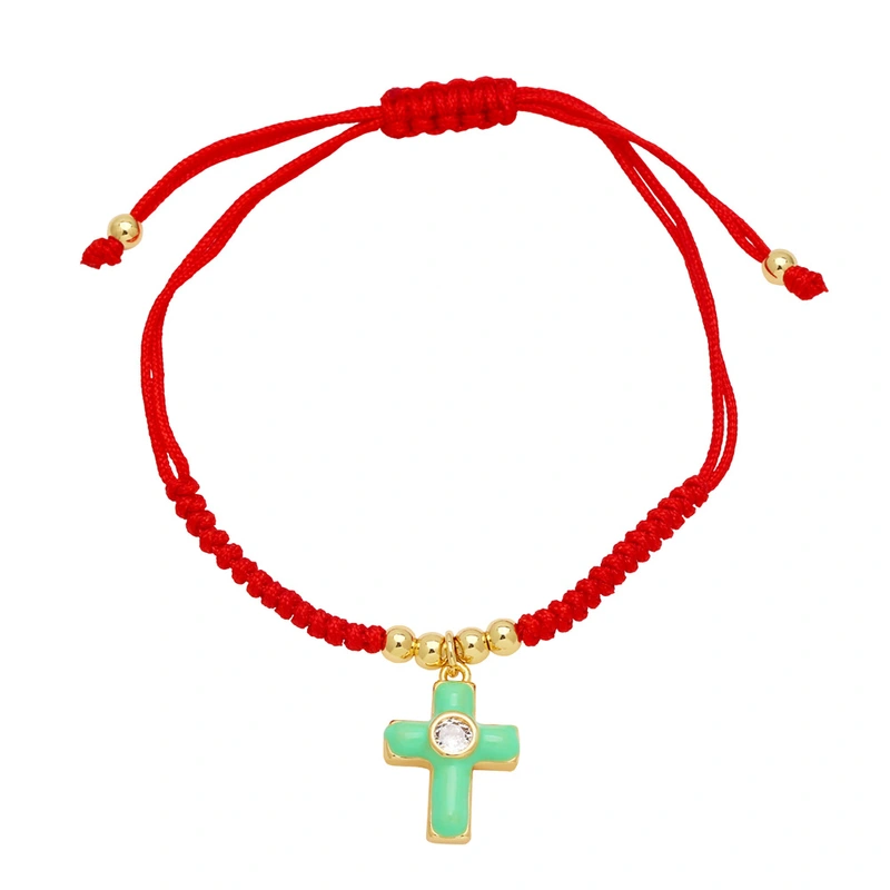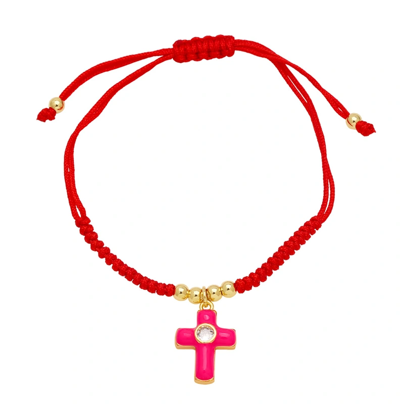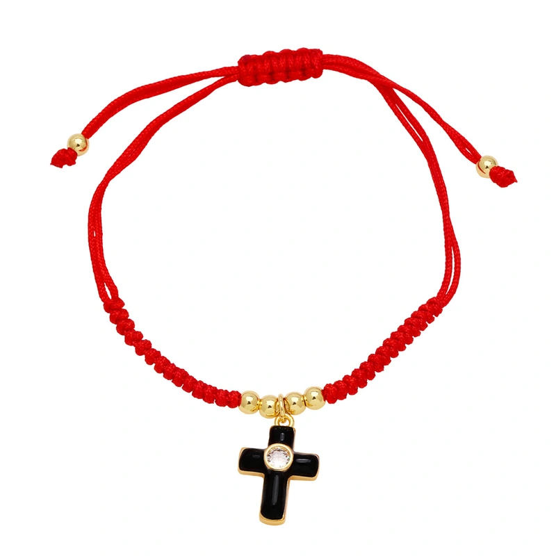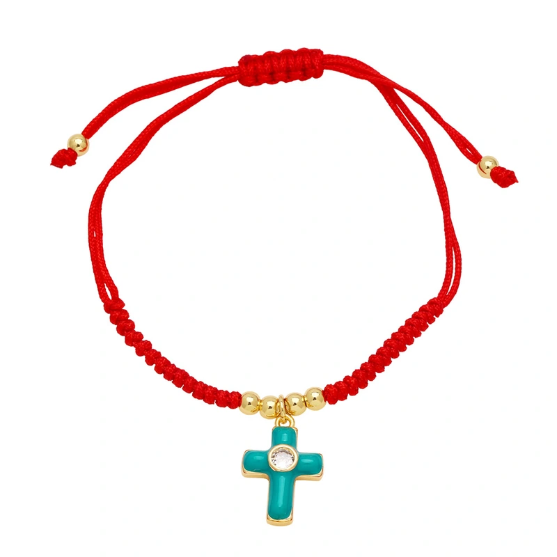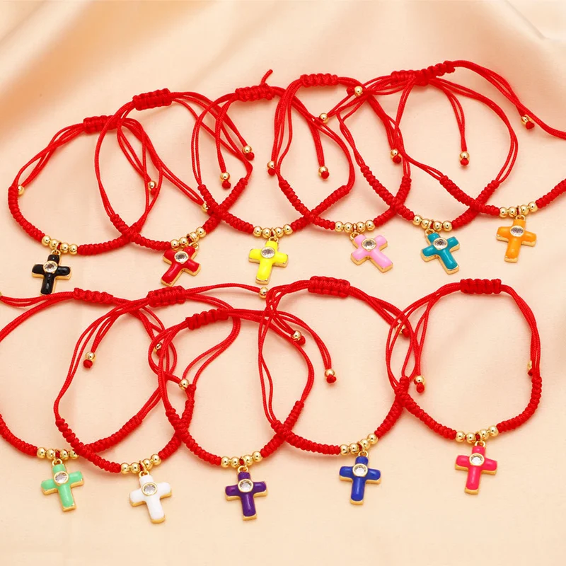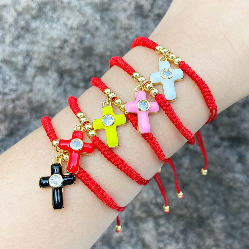 سوار صليب ساخن بتصميم مميز على شكل قطرة زيت ملونة وحبل أحمر مجوهرات نسائية brm16