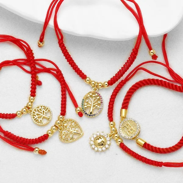 سوار قلادة شجرة الحياة للنساء مصنوع يدويًا من حبل أحمر على شكل شجرة الحياة brd17