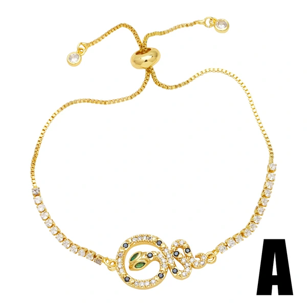 سوار من الزركونيوم الكامل مكون من 26 حرفًا إنجليزيًا مطليًا بالنحاس والذهب الحقيقي مجوهرات قابلة للتعديل brm62