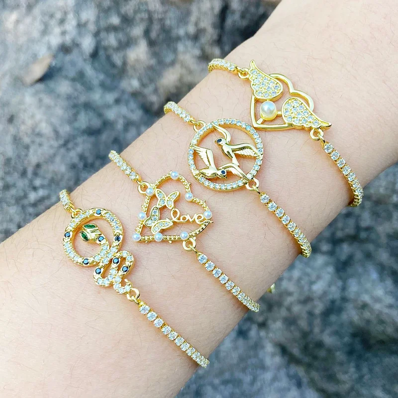 سوار قلب لؤلؤي جديد الأكثر مبيعًا للنساء بسيط مرصع بالزركون مطلي بالذهب سوار ثعبان brm19
