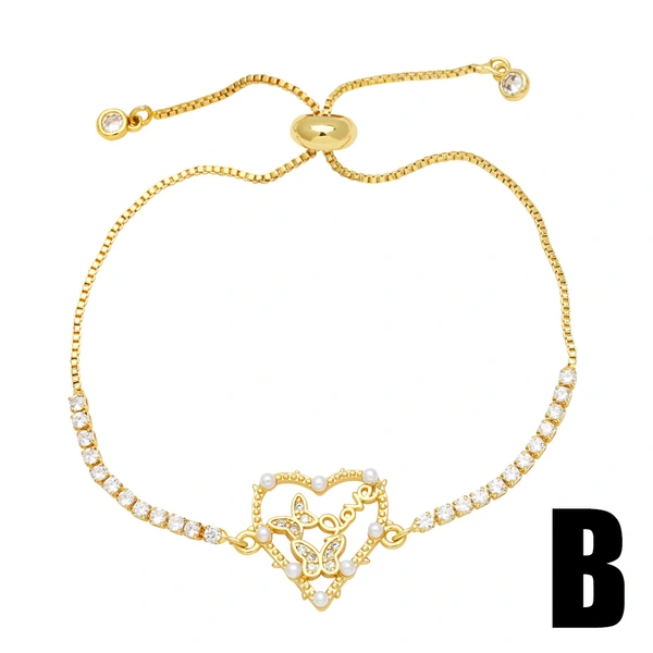 كسوار مجوهرات مكون من 26 حرفًا، سوار يد مطلي بالذهب للنساء، سوار مجوهرات على شكل حب brc19
