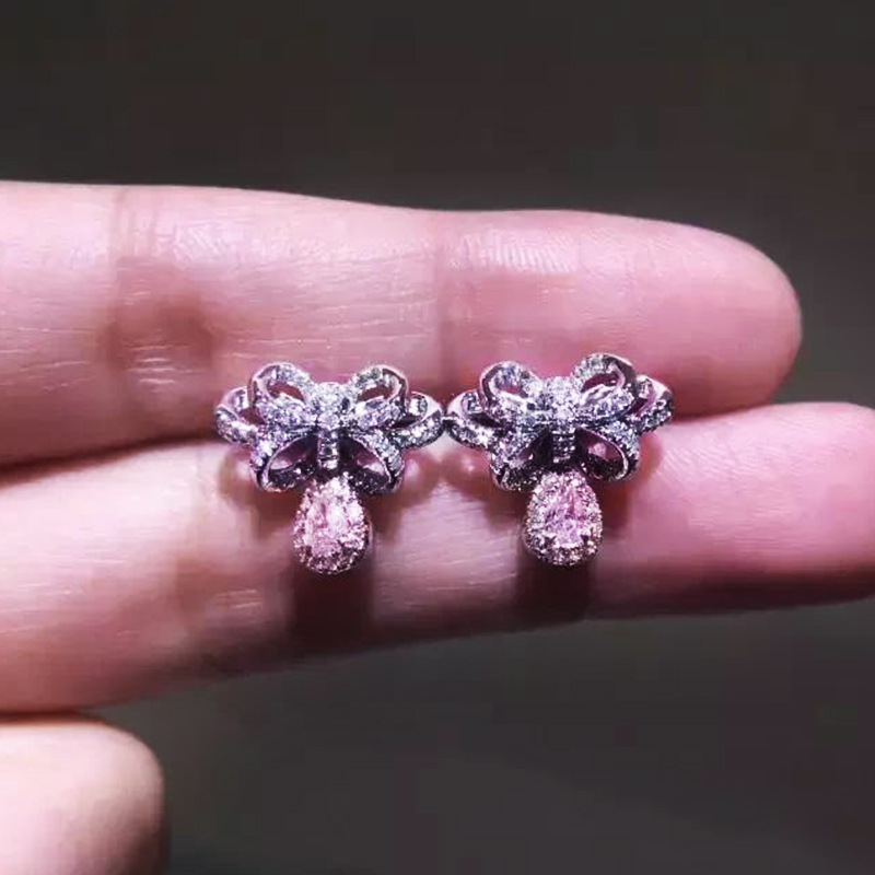 أقراط على شكل فيونكة وردية للبنات اللطيفة بتصميم ثقيل وخفيف الوزن على شكل أقراط فاخرة من شبكة أقراط المشاهير