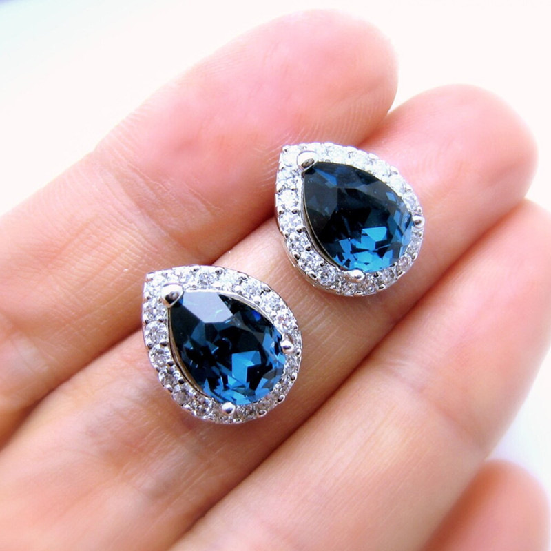 أقراط طويلة فاخرة من الزركون والياقوت الأزرق بتصميم المشاهير على شكل بث مباشر، أقراط هدية عيد الحب للنساء