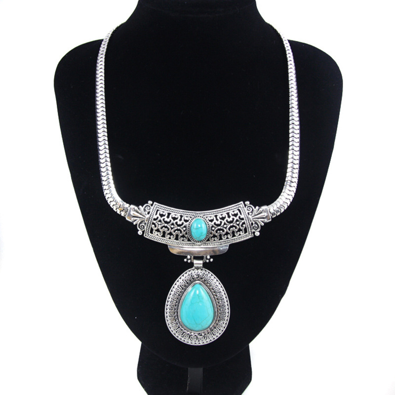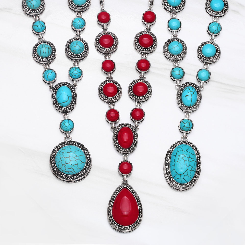 قلادة فيروزية أوروبية وأمريكية بتصميم هندسي دائري عتيق للبيع بالجملة nka098