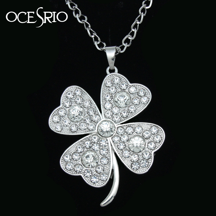 هدية لطيفة مجوهرات أوروبية وأمريكية أنيقة تناسب جميع الأذواق قلادة على شكل نبات البرسيم بأربع أوراق قلادة من الكريستال للنساء nkm68
