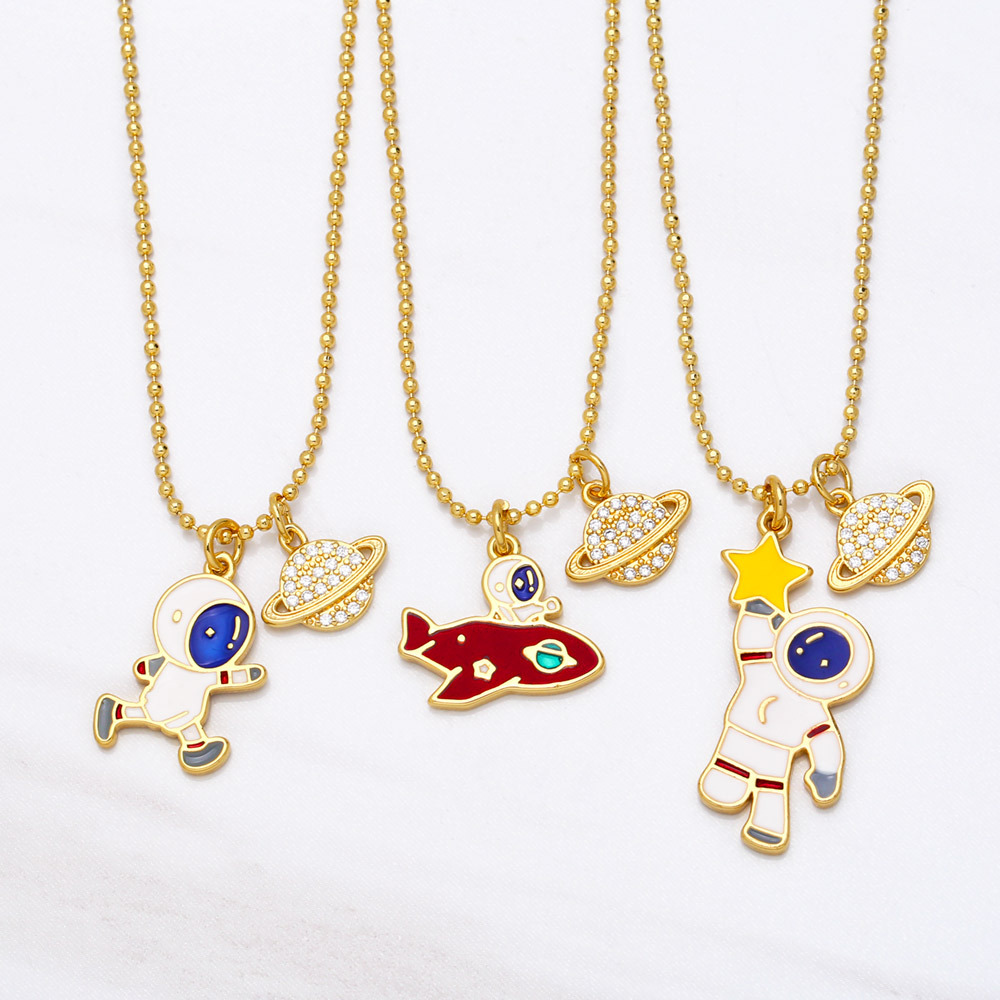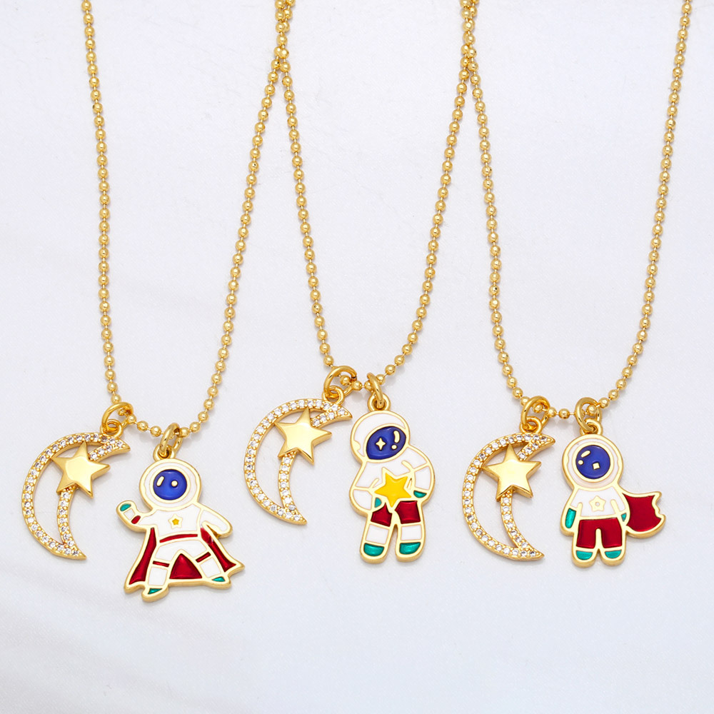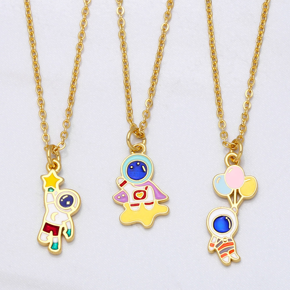 قلادة جديدة لرواد الفضاء على شكل قطرة زيت ملونة لطيفة مبتكرة على شكل رائد فضاء سلسلة الترقوة nka062