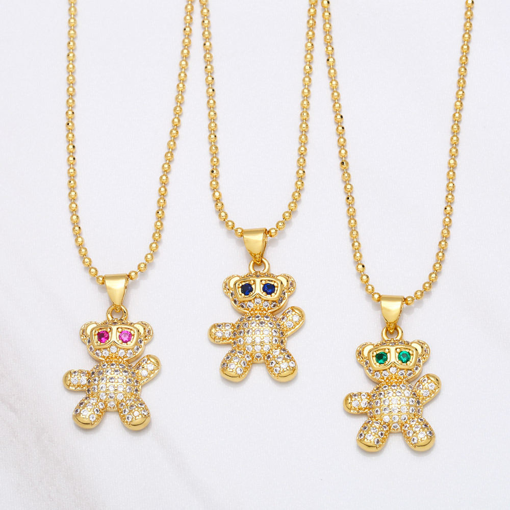 قلادة على شكل دب أوروبي وأمريكي لطيف للنساء سلسلة ترقوة هيب هوب بسيطة سلسلة سترة شخصية قلادة من الزركون nka025