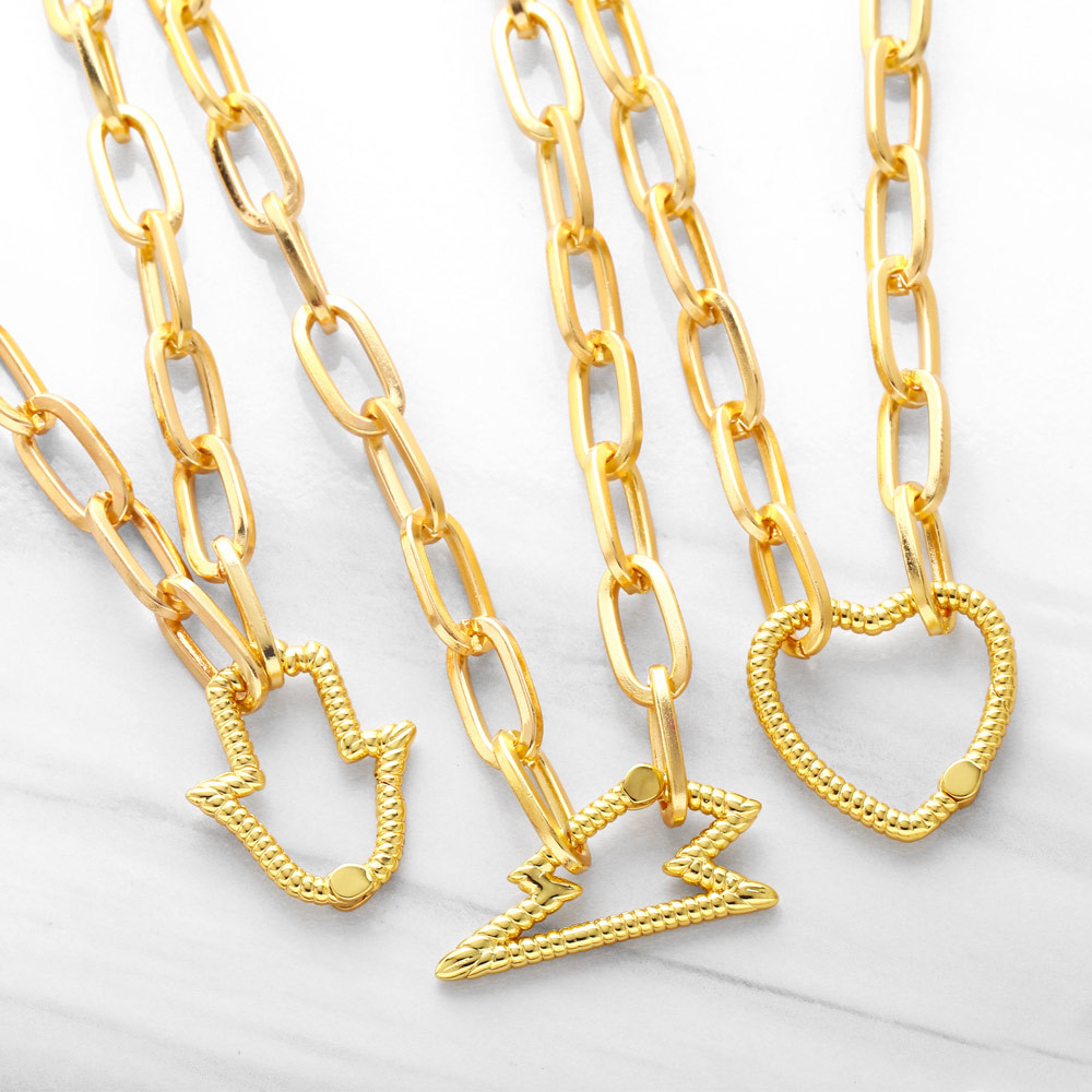 قلادة هيب هوب معدنية جديدة أوروبية وأمريكية على شكل مشبك حب برق مطلية بالذهب عيار 18 قيراطًا وسلسلة ترقوة nka016