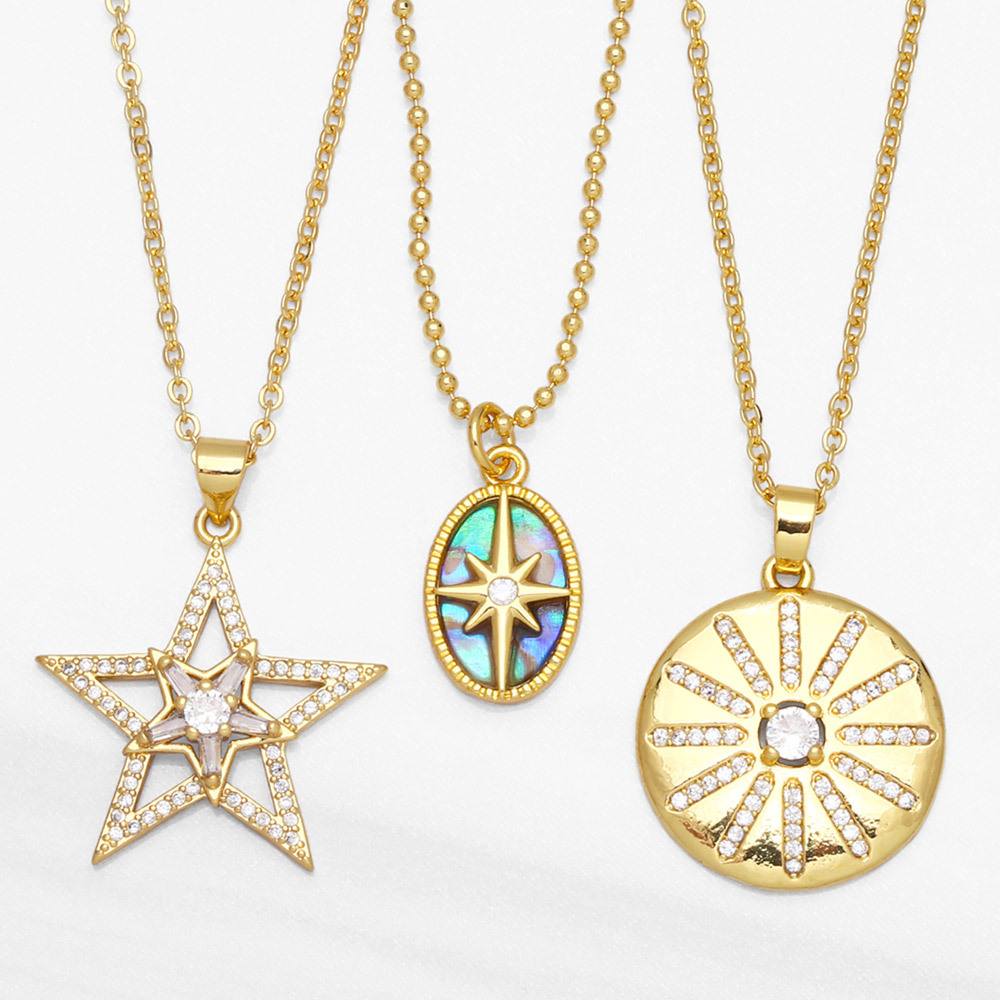 قلادة نسائية من الزركون بتصميم نجمة هندسية دائرية بتخفيضات أوروبية وأمريكية، سلسلة ترقوة، للبيع بالجملة، NKB005