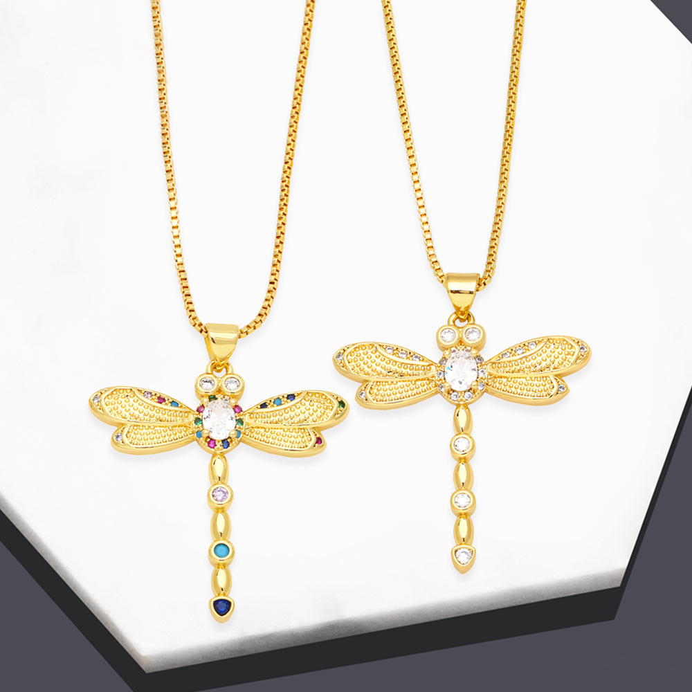 قلادة على شكل يعسوب من الألماس بتصميم أوروبي وأمريكية رائجة البيع، سلسلة ترقوة أنيقة للنساء NKB541