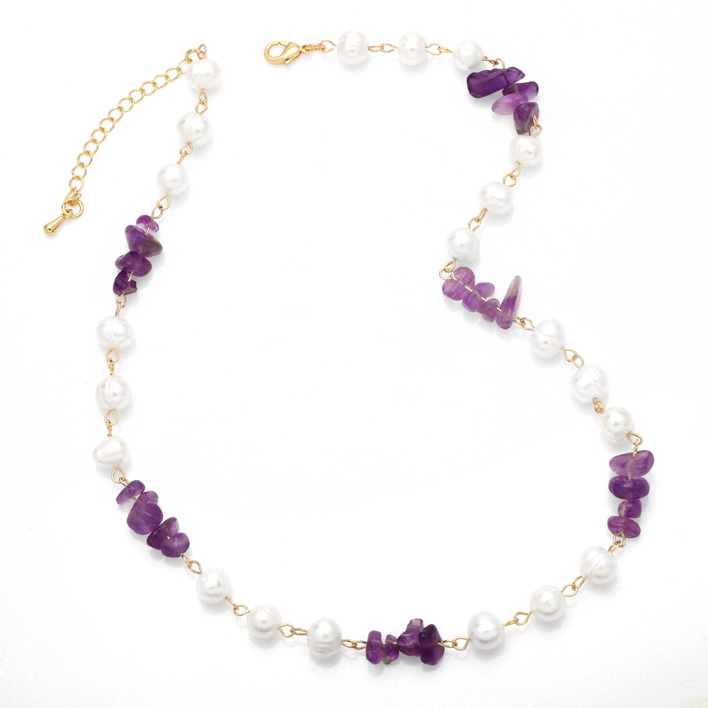 قلادة نسائية أنيقة أوروبية وأمريكية من اللؤلؤ والحصى غير المنتظمة سلسلة الترقوة خفيفة فاخرة على الطراز البارد بتصميم عتيق nkb515