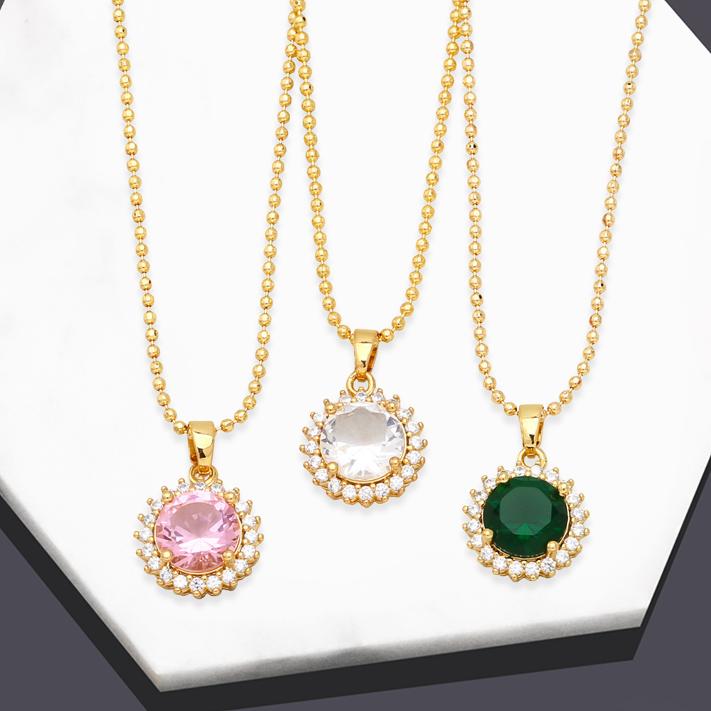 قلادة زركون دائرية هندسية على الطراز البارد للنساء، قلادة بسيطة أوروبية وأمريكية جديدة، سلسلة الترقوة nkb553