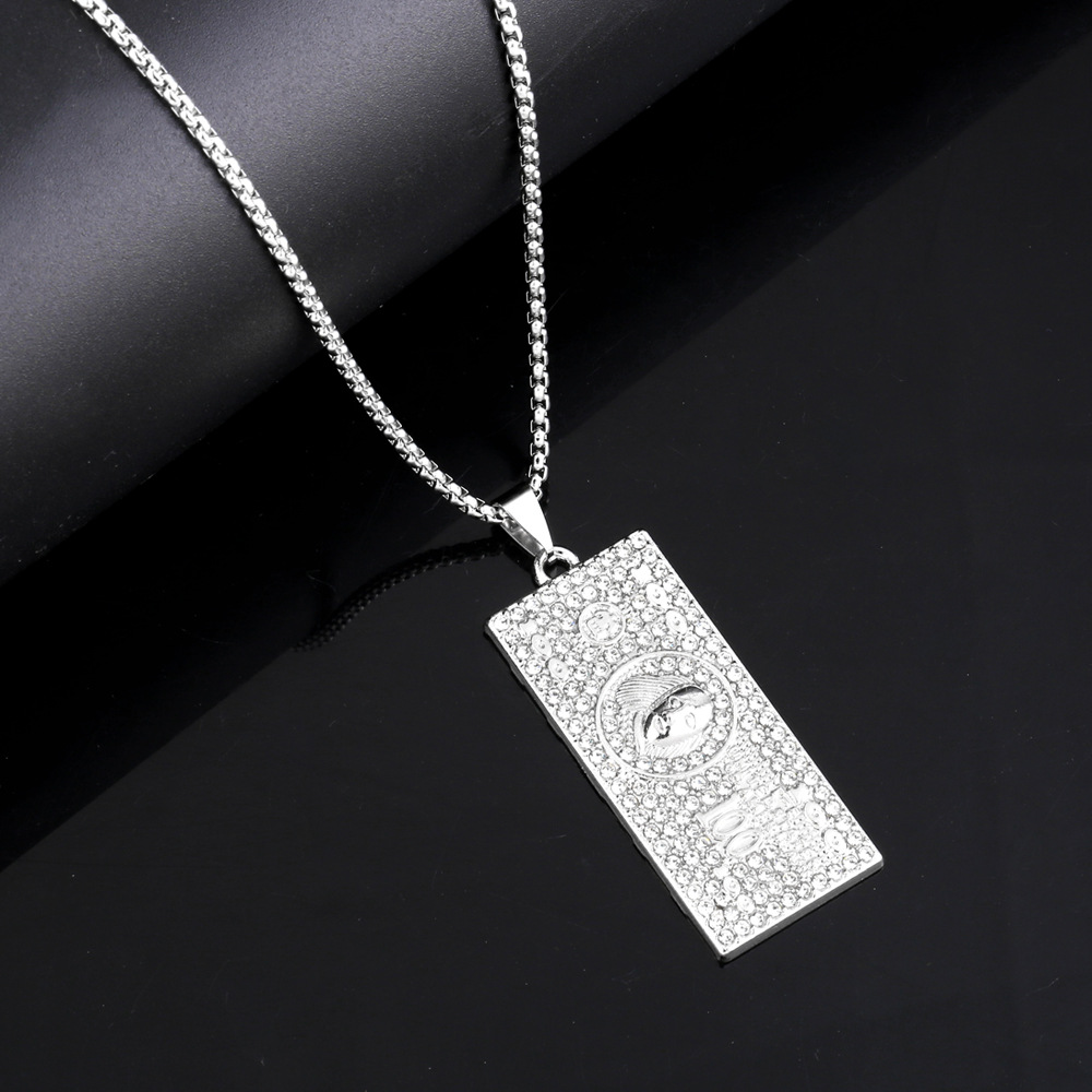 قلادة هيب هوب ذات طابع أوروبي وأمريكية على شكل دولار أمريكي للرجال والنساء قلادة مربعة عصرية من سبائك حجر الراين قلادة طويلة nkt34