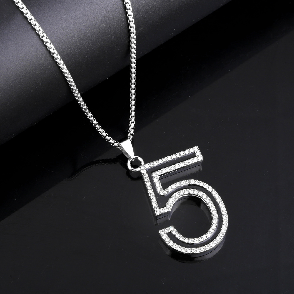 قلادة هيب هوب بسيطة للرجال والنساء على شكل رقم 5 من الفولاذ المقاوم للصدأ على شكل سلسلة سترة من أوروبا وأمريكا nkt39