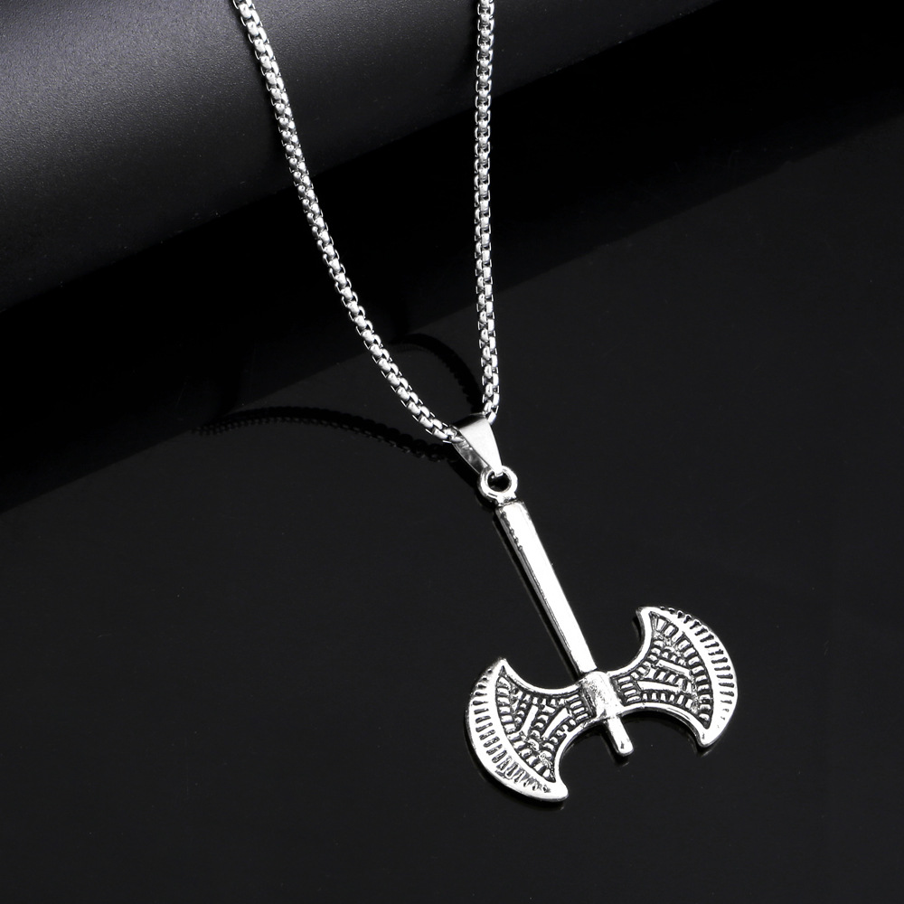 قلادة طويلة من الفولاذ التيتانيوم بتصميم أوروبي وأمريكية جديدة على شكل فأس هيب هوب بتصميم عتيق للرجال nkt09