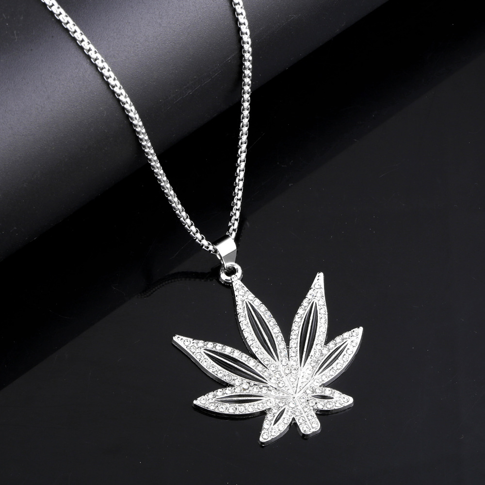 قلادة من الذهب الوردي على شكل ورقة القيقب من الألماس للرجال والنساء بتصميم عصري وسلسلة كنزة طويلة من nkt35