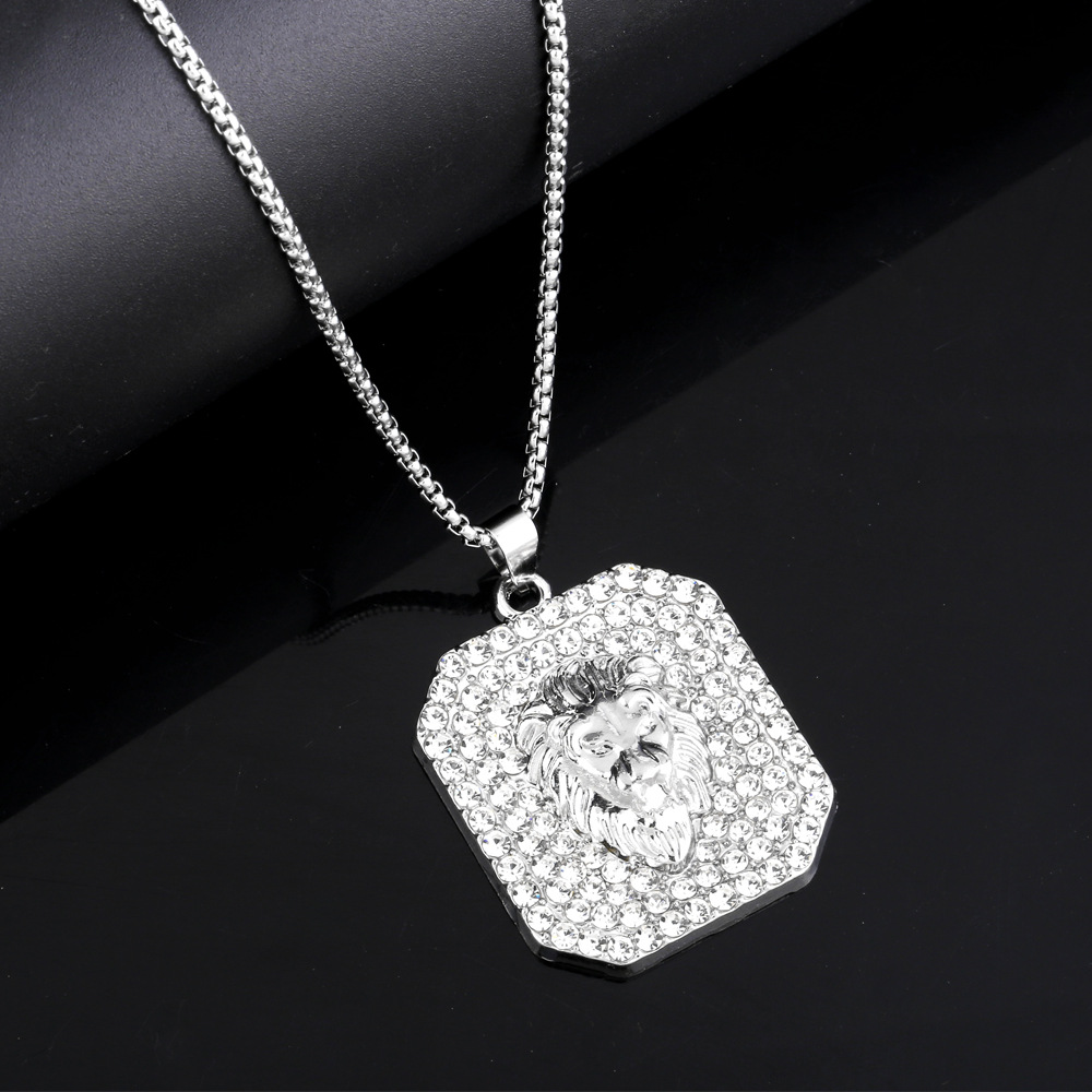 قلادة هيب هوب للرجال من الفولاذ المقاوم للصدأ ذات شخصية مهيمنة على شكل أسد من الألماس بالكامل سلسلة سترة nkt31