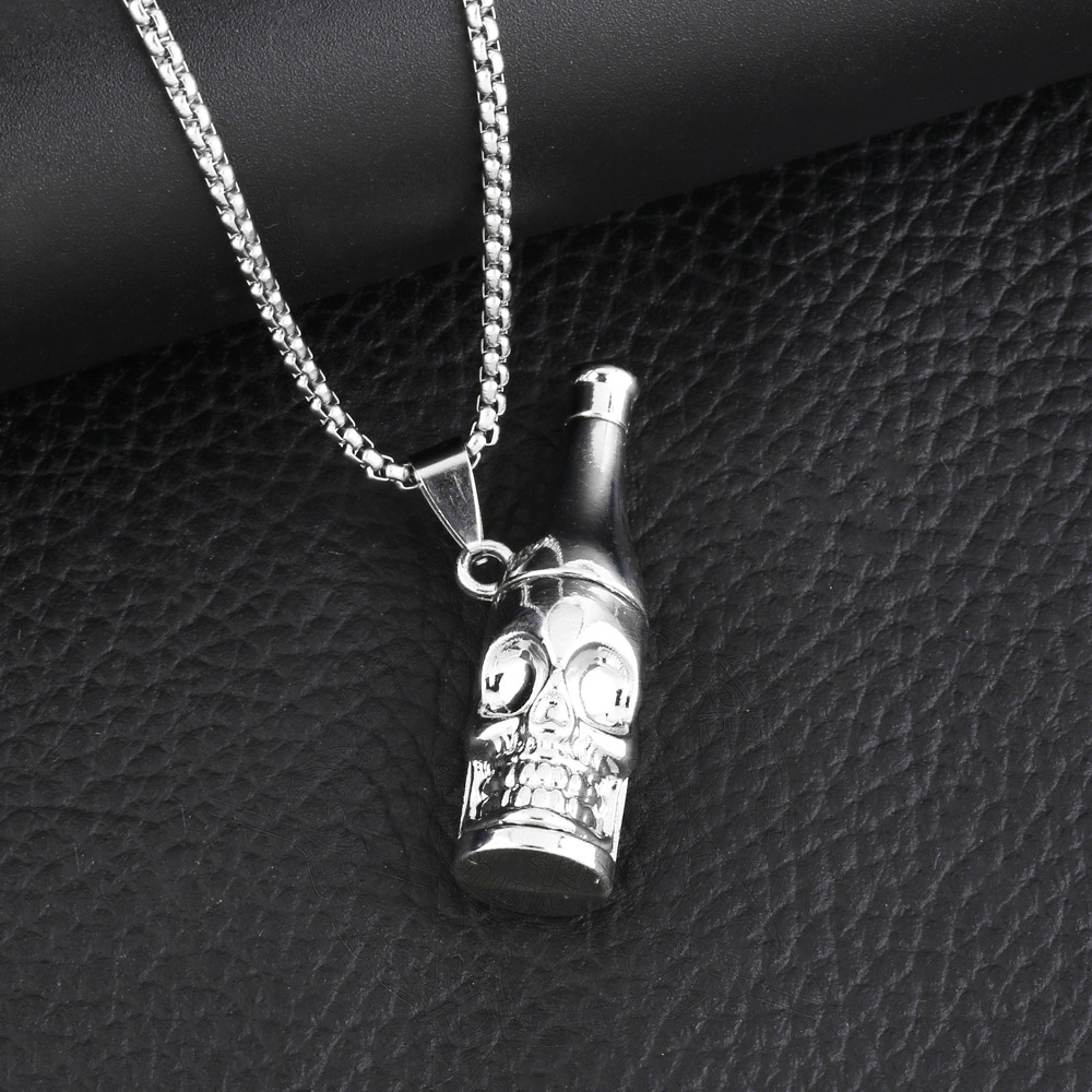 قلادة على شكل زجاجة بيرة على شكل جمجمة بتصميم أوروبي وأمريكي للرجال، سلسلة طويلة من البلوزات العصرية من موسيقى الديسكو والهيب هوب nkt90