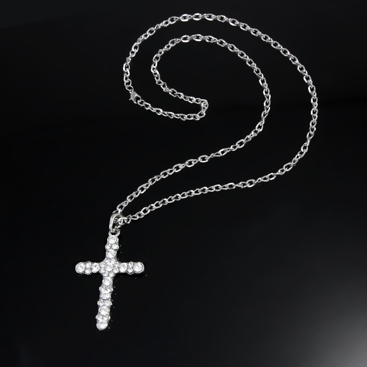 قلادة صليب على شكل قلب على الطراز الأوروبي والأمريكي مع قلادة طويلة مرصعة بالألماس من مصنع المجوهرات للبيع المباشر nkk05