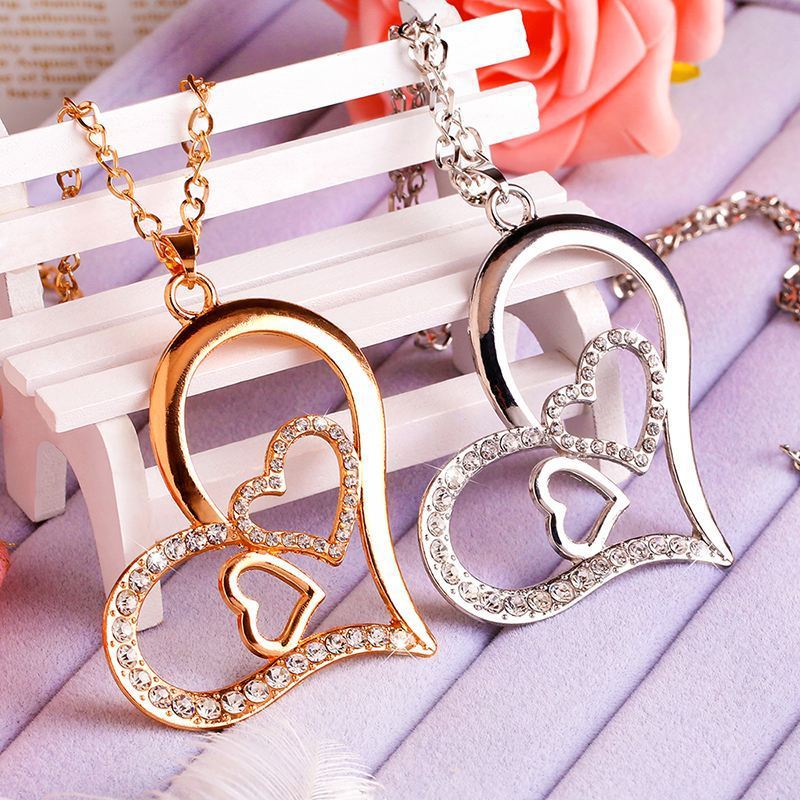 وصل حديثًا في الشتاء سلسلة سترة على شكل قلب من الألماس مجوهرات للزوجين الكوريين قلادة طويلة من السبائك بسعر خاص nkn21