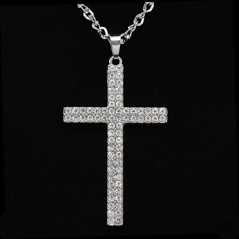 قلادة صليب مجوف مرصعة بالألماس بالكامل من إكسسوارات جديدة، قلادة مطلية بالنحاس ومرصعة بالزركون اللامع الرائع nkp11