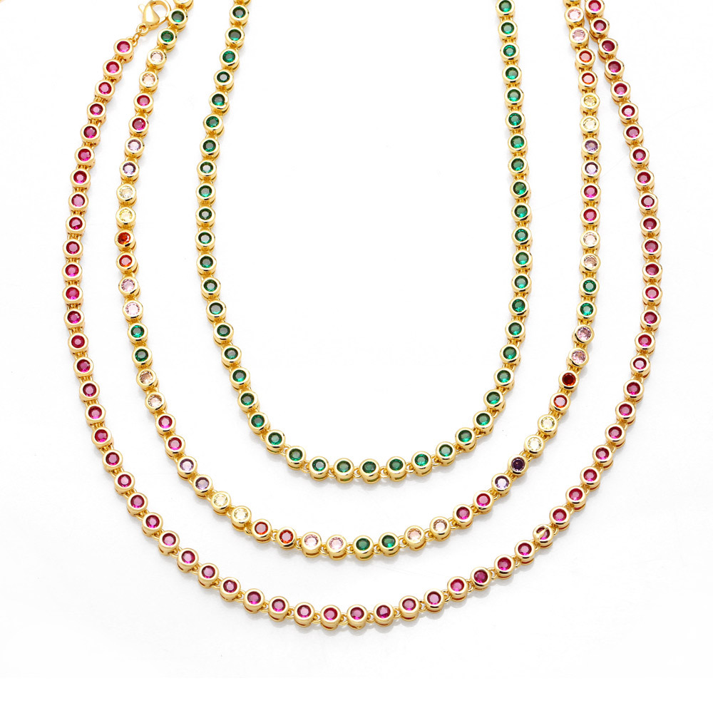 سلسلة من قلادات الزركون الملونة على طراز الهيب هوب الأوروبي والأمريكي، إكسسوارات متعددة الاستخدامات، سلسلة تنس من الألماس الملون، سلسلة الترقوة nkb461