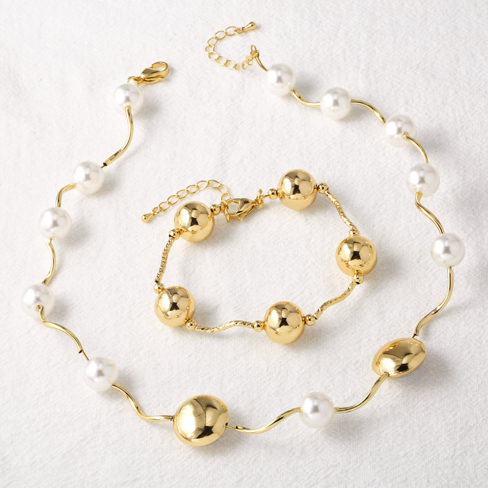 قلادة نسائية مصنوعة يدويًا من خرز دائري من اللؤلؤ والمجوهرات، مطلية بالنحاس، مصنوعة من الذهب عيار 18 قيراطًا، رقم الصنف nkb136