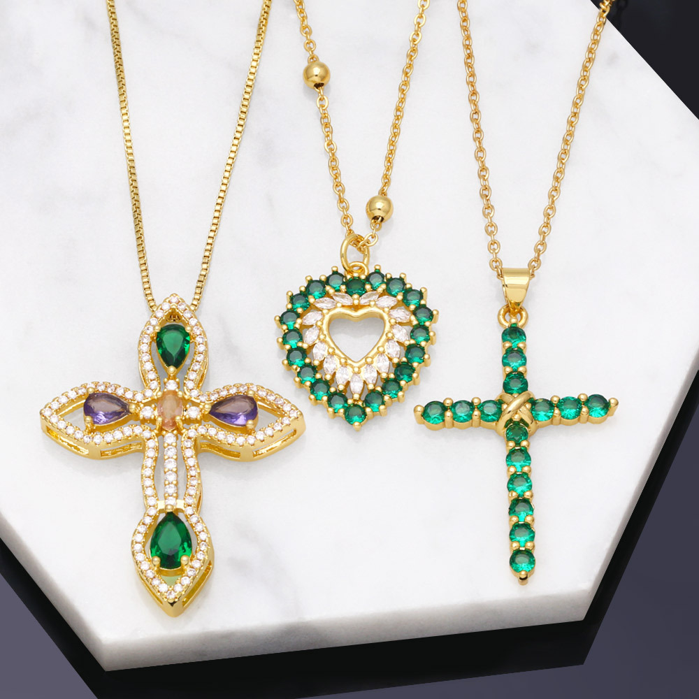 قلادة من الزركون بتصميم جديد لعام 2023 عالية الجودة على شكل صليب زمردي وسلسلة ترقوة للبيع بالجملة nkb302